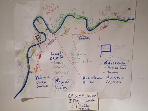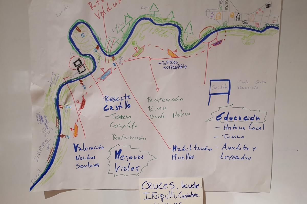El evento estuvo dividido en tres bloques. En el primer bloque se pre-estrenó el documental "Voces de un territorio", a través del cual se presentaron resultados preliminares del proyecto en formato audiovisual. En el segundo bloque se desarrolló un taller facilitado por los y las monitoras del proyecto, donde los y las participantes visualizaron y definieron los escenarios futuros ideales para su propia comunidad, dibujando tales escenarios de manera colectiva y dialogando en torno a ello. Por último, en el tercer bloque se sintetizaron y compartieron las conclusiones más relevantes -las cuales están agrupadas en el documento adjunto "Manifiesto por la Memoria del Río Cruces" en formato PDF-.