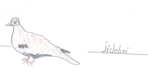 [English]: "This bird is looking for a place with a lot of food in the bush, it likes the fruits of prickly pear. She is/was a very short granny."